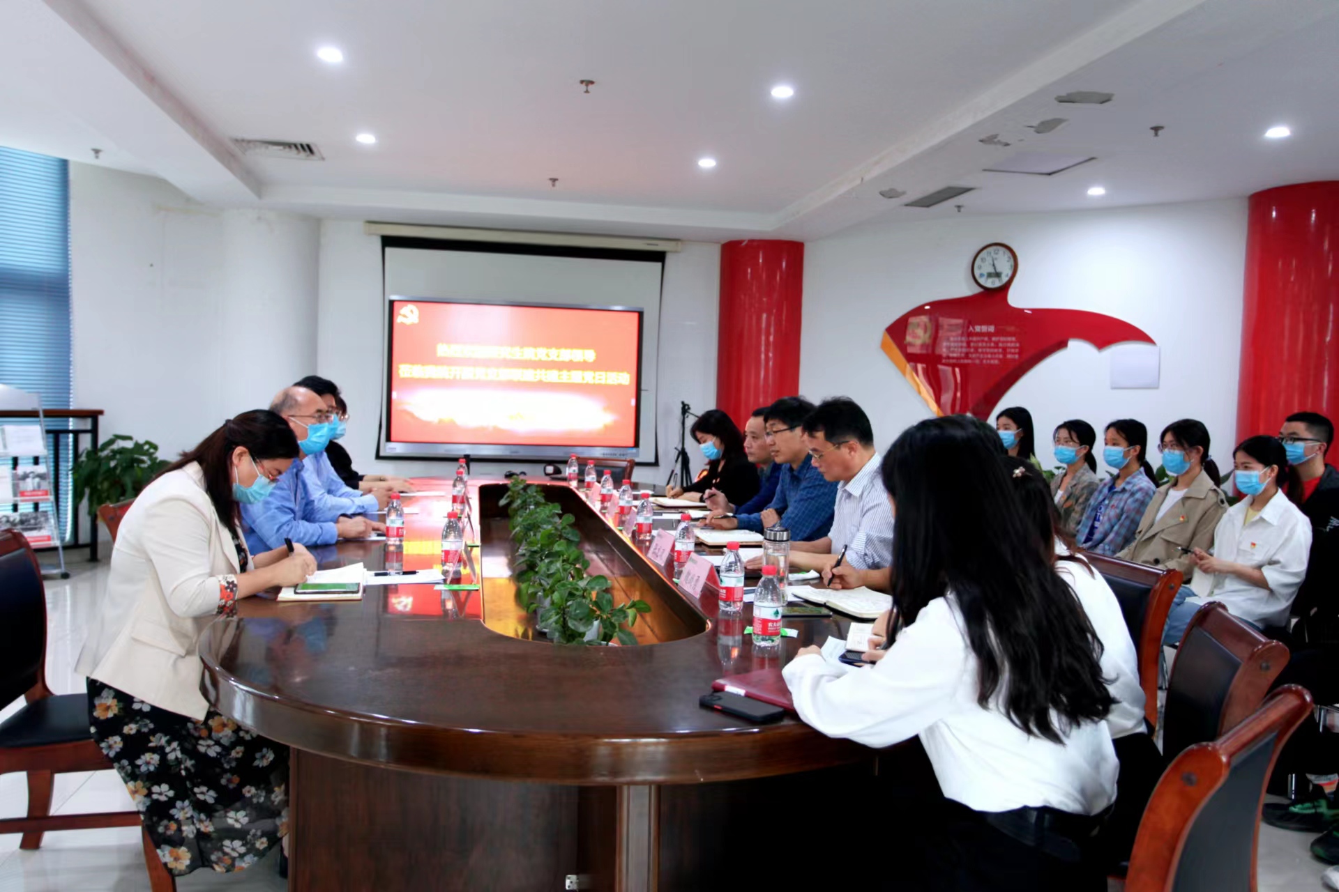 研究生第二党支部17名党员共同参加本次支部联建共建。院党委书记廖仲磊、院长张龙现、院党委副书记杜家方、副院长魏战勇参加活动。