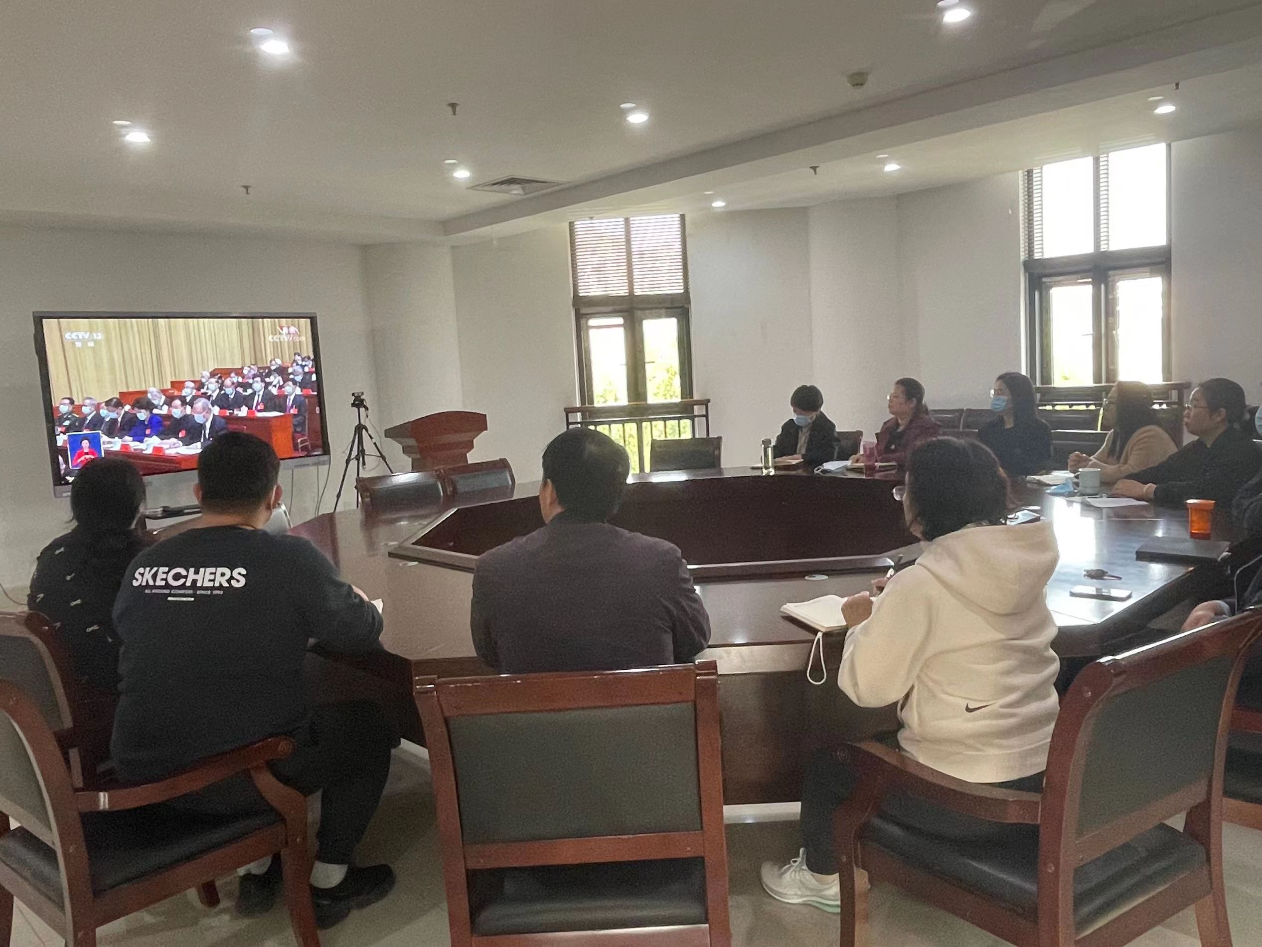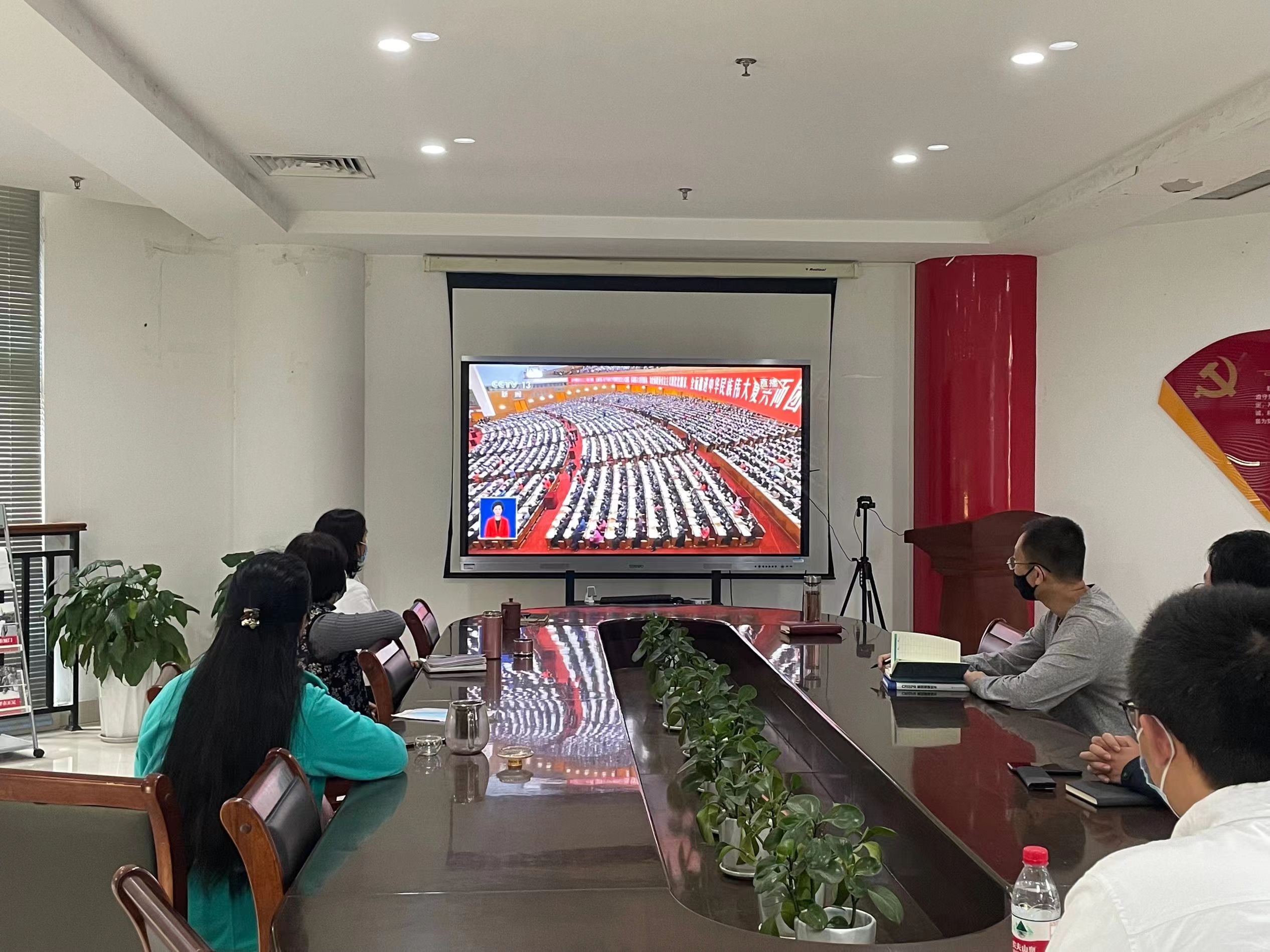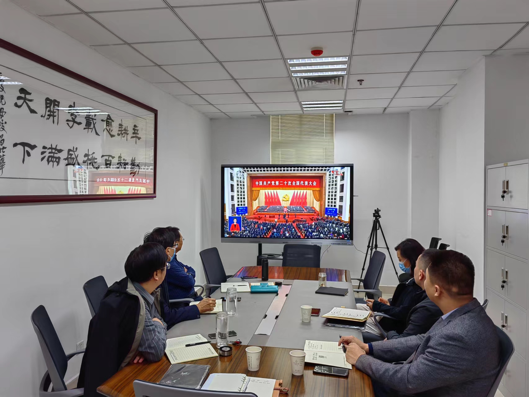 院领导班子成员集中观看直播。院领导班子全体成员在第一实验楼中408会议室集中观看党的二十大开幕会现场直播,认真聆听习近平同志代表十九届中央委员会向大会所作的报告,见证这个激动人心的历史时刻。