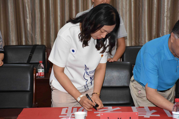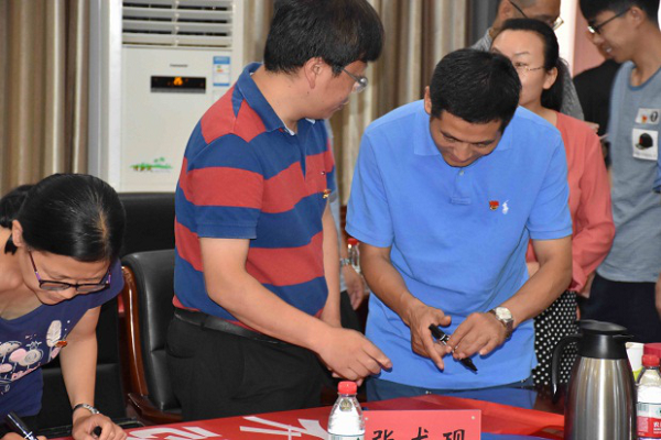 预防兽医系支部书记张红英与该校园艺系党支部书记陈双臣就各自支部的建设情况进行了充分交流,双方签订了“全国党建工作样板支部”倡议书,共同倡议: