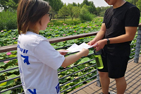 团队成员在黄河湿地公园跟大家开始宣讲、引导大家爱护母亲河。当成员开口说是要宣传保护母亲河时,大家的眼中有了一份光,这可能是中国人心中对母亲河的爱吧。当成员讲到母亲河的现状,大家眼中的光有些暗淡,这就是对黄河母亲现状的担心吧。当成员们讲完后,发现大家的眼中多了一份坚定,我想炎黄子孙对母亲河爱的深沉。只是这份爱藏在心里,需要有人帮他们挖掘出来。
