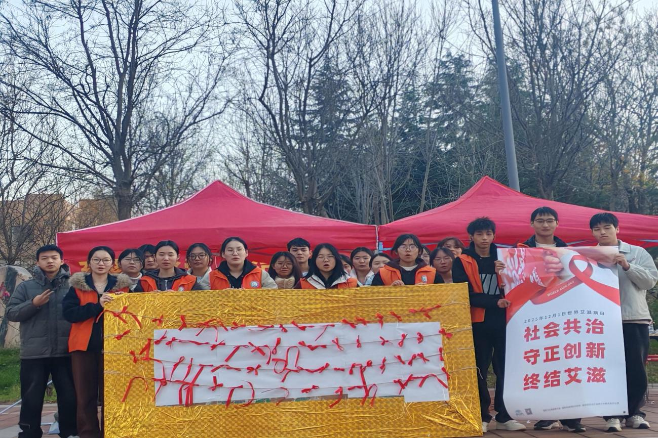 于龙子湖校区悦动馆南侧组织开展“世界艾滋病日”科普宣传活动。活动普及防艾知识,倡导健康观念,吸引了大量学生积极参与。