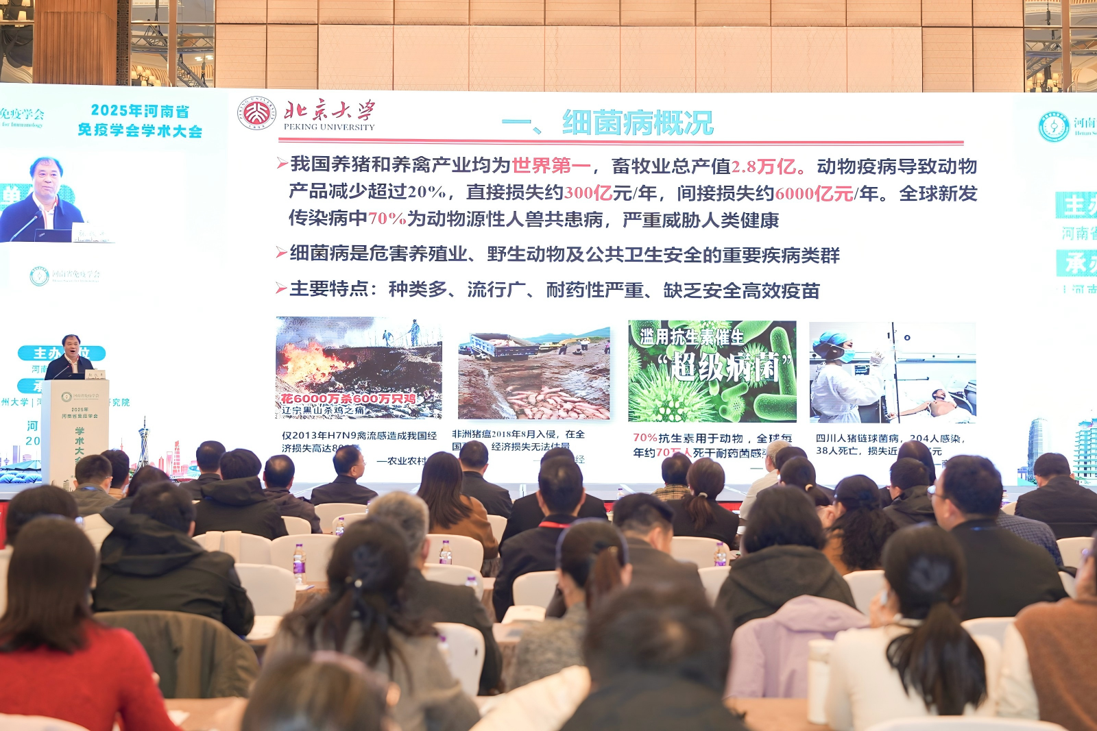 动物疾病防控研究所等全省高校、科研院所、疫控中心及相关企业的近200名专家学者和会员代表参会。会议由河南省免疫学会党委书记长、秘书长高峰教授主持。