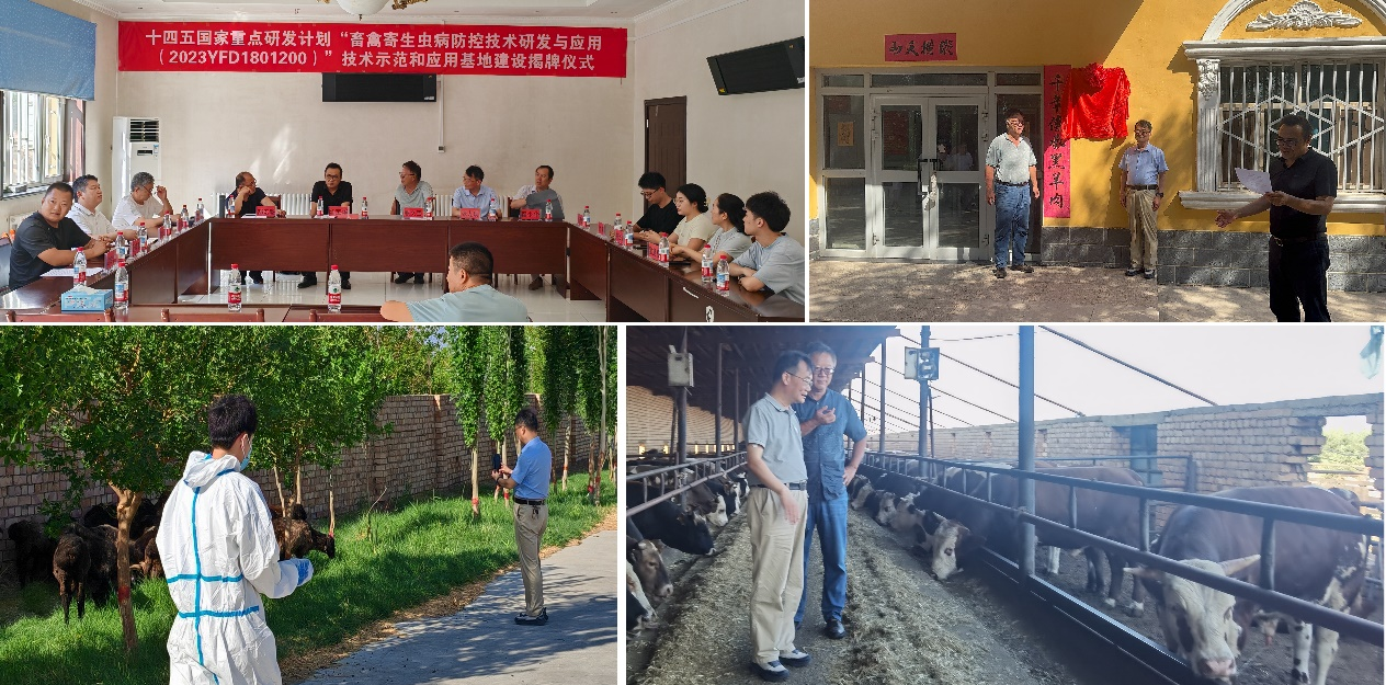张龙现教授带领团队赴新疆调研主持的十四五国家重点研发计划“畜禽寄生虫病防控技术研发与应用(2023YFD1801200)”新疆医科大学承担课题的进展情况,同时给项目示范基地“托克逊县风城国营牧业有限公司”揭牌。