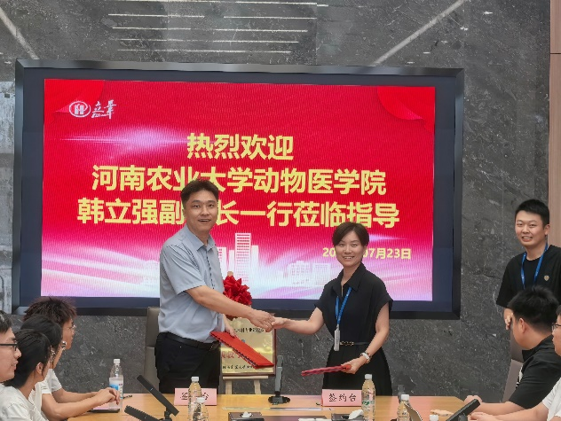 本科生实习工作提供的大力支持表示感谢。他强调,本科实习是高校和企业协同育人、促进人才培养的重要环节,希望以此次交流为契机,建立深度合作,建立长久友谊,充分发挥双方优势资源互补,达到企业和高校“双赢”的目的,共同提升人才培养质量。随后在师生互动交流环节,实习生依次分享了自己实习期间的收获和感悟,表示实习期间学到了很多实验技能和锻炼了自己沟通能力。岳丽娟对实习生们在立华取得的收获表示欣慰,同时也勉励实习生们珍惜立华提供的宝贵实习机会,踏实肯干,发扬农大动医精神,给企业留下好的印象。