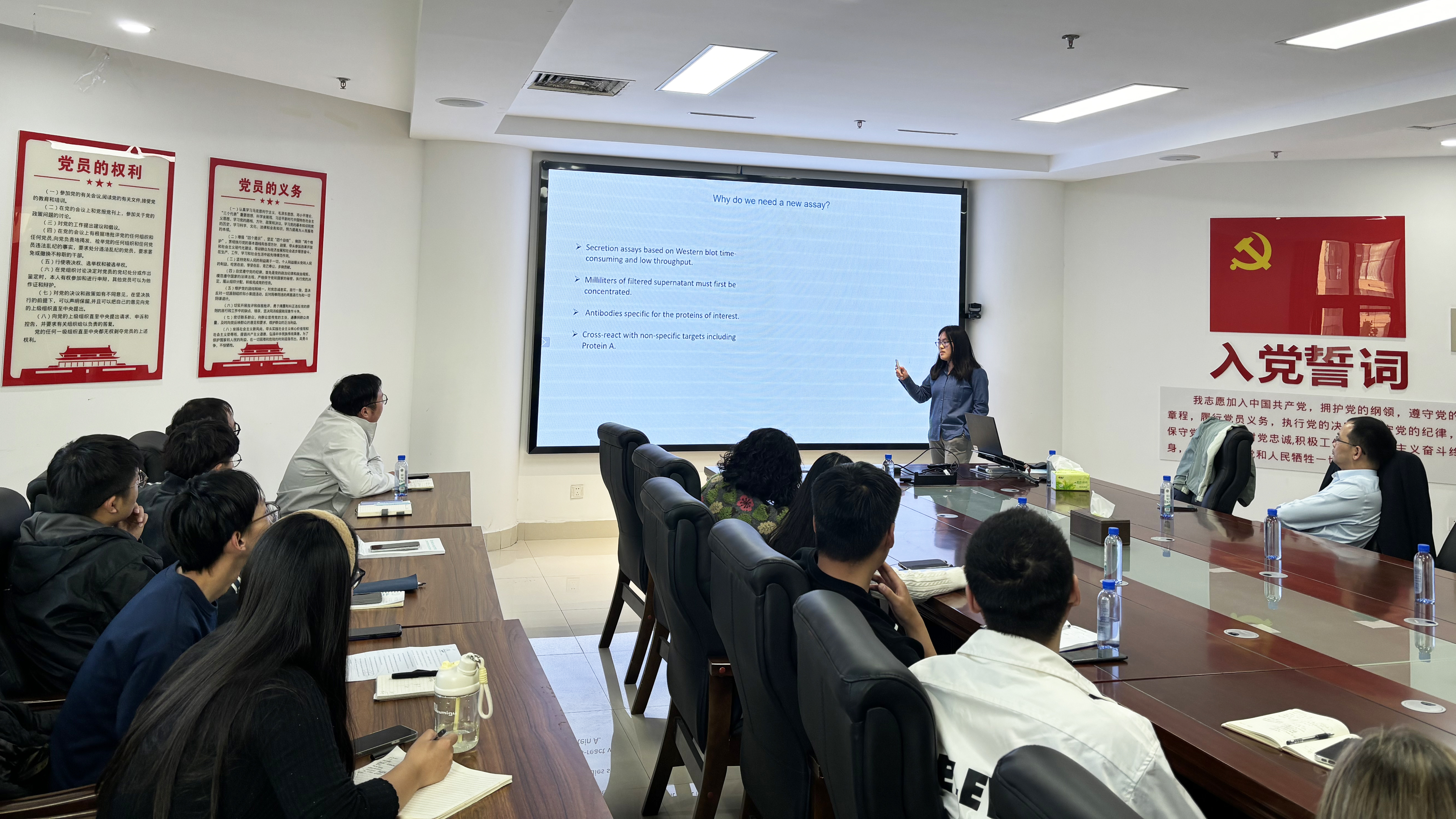 会后,杨亚萍博士与现场师生进行了细致交流,此次报告不仅提供了关于金黄色葡萄球菌VII型分泌系统的全新视角,还为相关领域的研究提供了新的思路和方法。