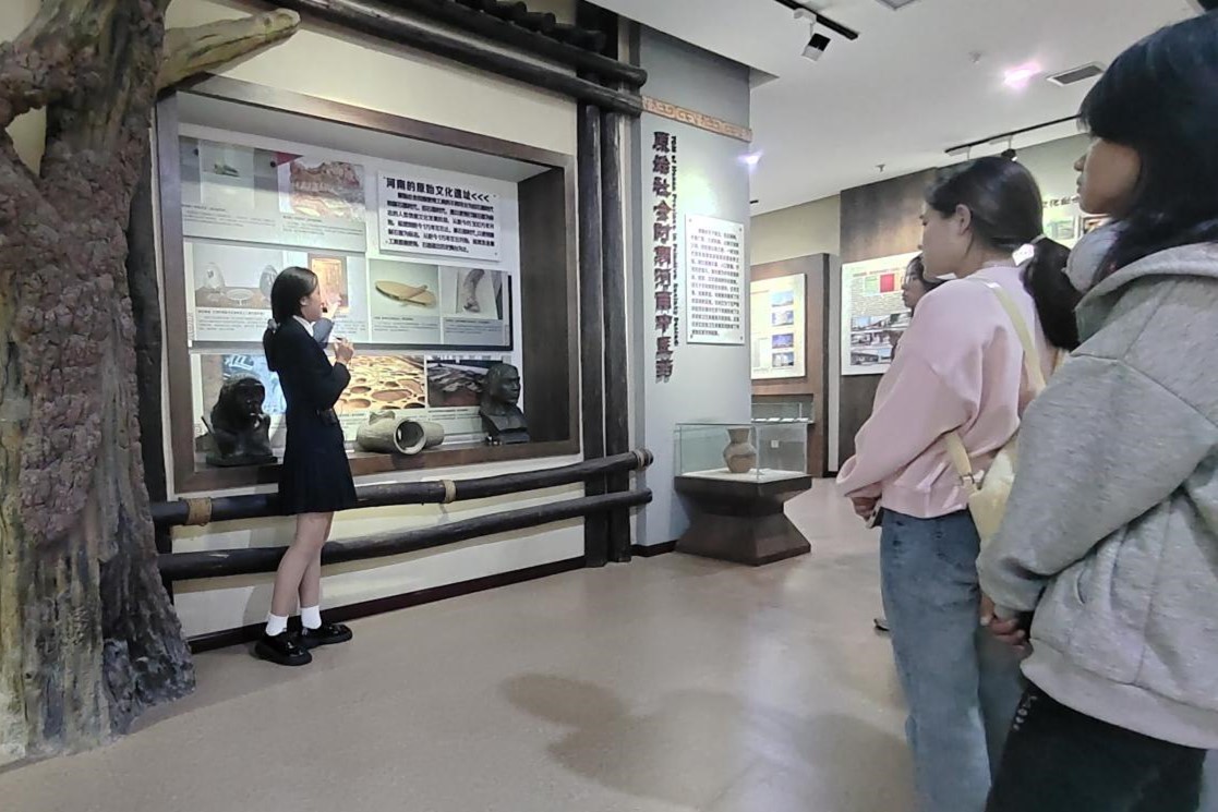 讲解员在向同学们讲解中医发展史
