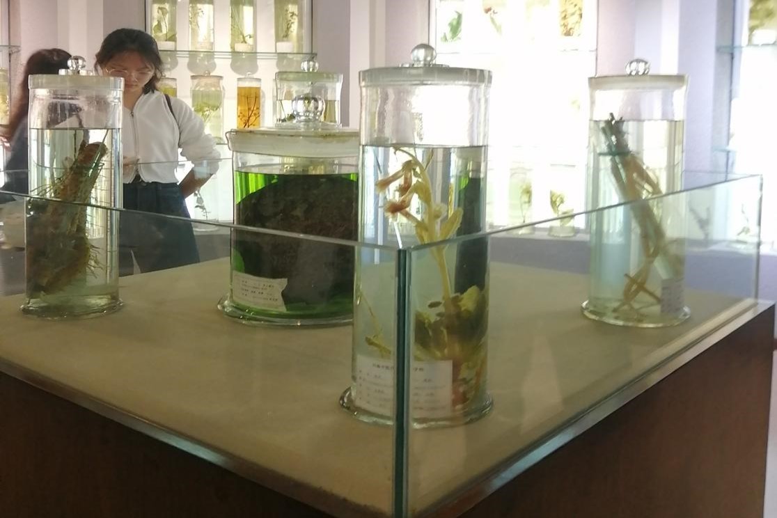 同学们参观中药馆植物腊叶标本 浸制标本