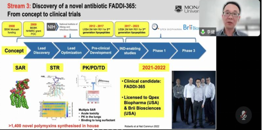 报告会上,李健深入浅出地论述了黏菌素衍生物的合成及构效关系研究、代表性化合物的抗菌活性和临床前毒性评价的内容。