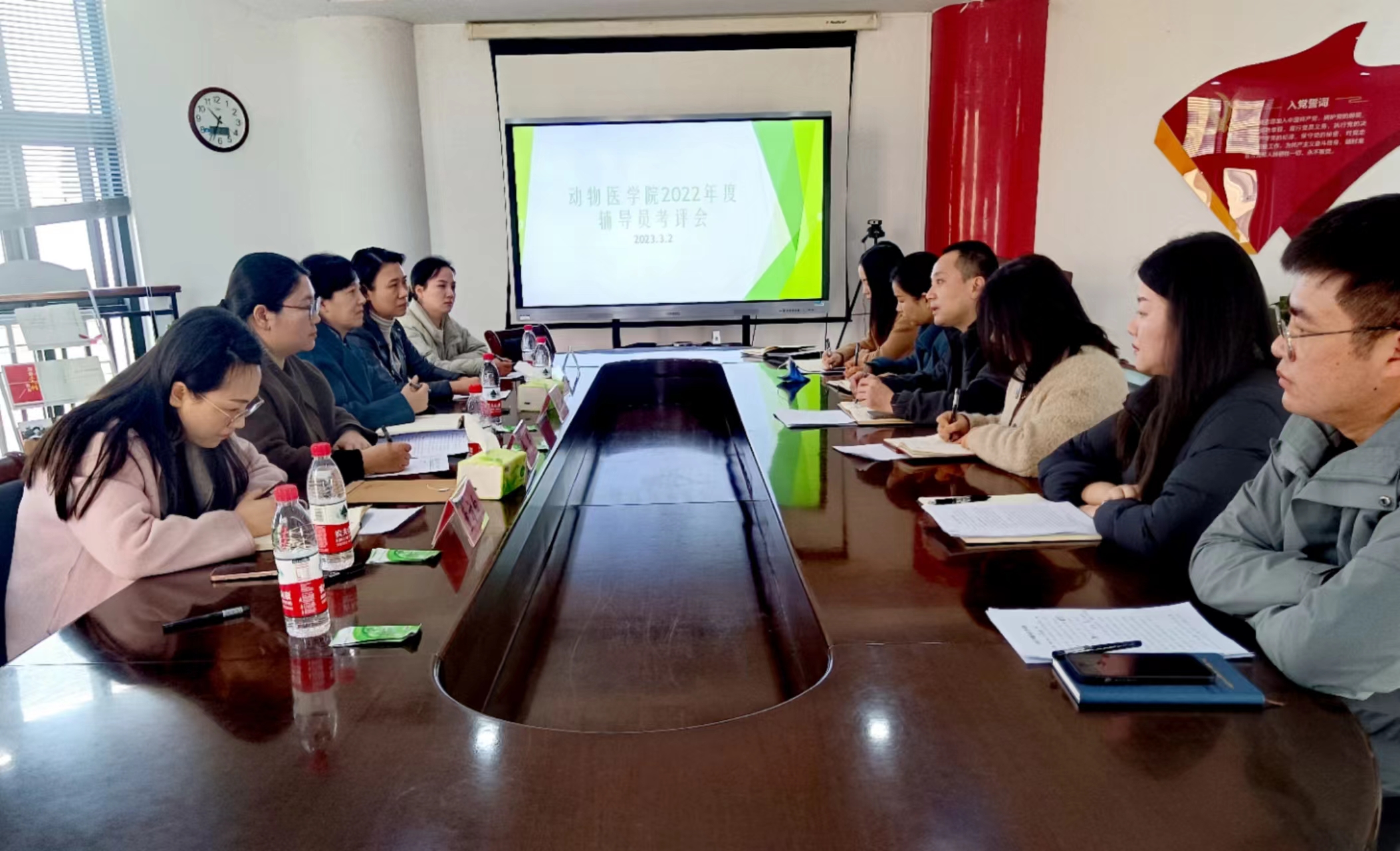 党委副书记杜家方、全体辅导员参加考核。会议由考核组组长余果主持。