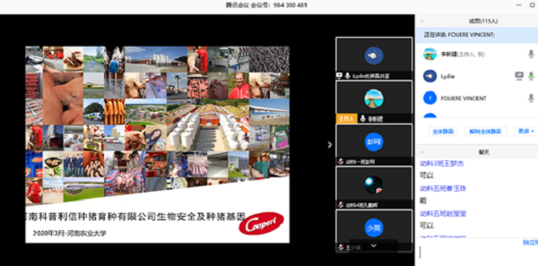 文森特首先介绍了法国科普利信在中国的事业发展,以中国科普利信种猪公司养猪实践为例,详细讲解了现代猪场设计及选址原则,猪场中如何构建严密的生物安全防控。他围绕猪场人、物、车等进出猪场的关键环境,结合非洲猪瘟防控,详细讲解了安全管理控制技术和猪场采取的生物安全措施。最后,文森特鼓励学生要勤奋敬业。他说,人生没有白费的努力,也没有碰巧的成功。