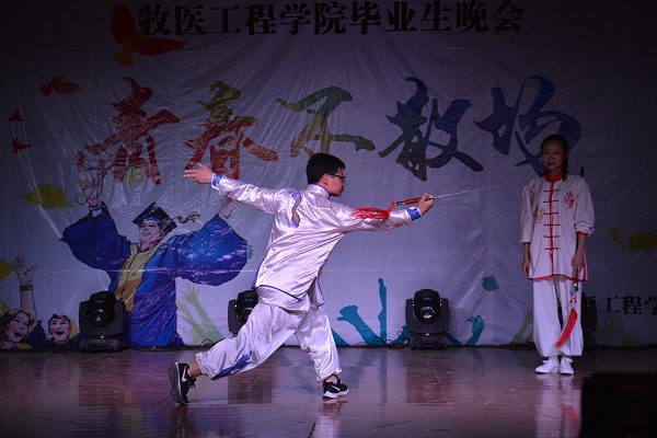 2019届本科生辅导员韩笑与临床兽医系青年教师黄淑成联袂送上节目《舞剑》