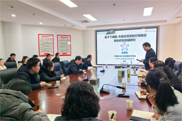 王修启在会上作题为《基于干细胞—类器官模型的猪肠道损伤修复机制研究》报告,介绍了基于猪肠道类器官平台,发现STp通过降低Wnt膜受体Frizzled7的活性,抑制Wnt/β-catenin信号通路,诱导小肠干细胞发育成囊性类器官,阻碍上皮细胞增殖和分化,促进其凋亡,最终导致肠黏膜结构和屏障功能完整性被破坏。为肠道健康调控和营养干预提供新的策略。